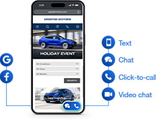 Shoppers can contact you through website chat, video chat, text or Facebook Messenger. A Spanish language widget is also available.