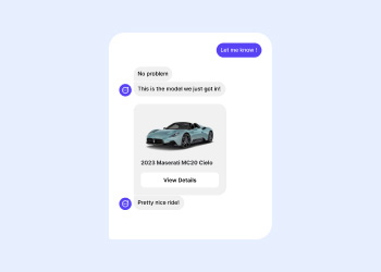- Show off your inventory with chat VDP — over 72% of chats are related to inventory, so we make it easy for customers to easily view specs, pictures, and videos. Our dynamic VDPs increase conversion for our customers by an average of over 54%!