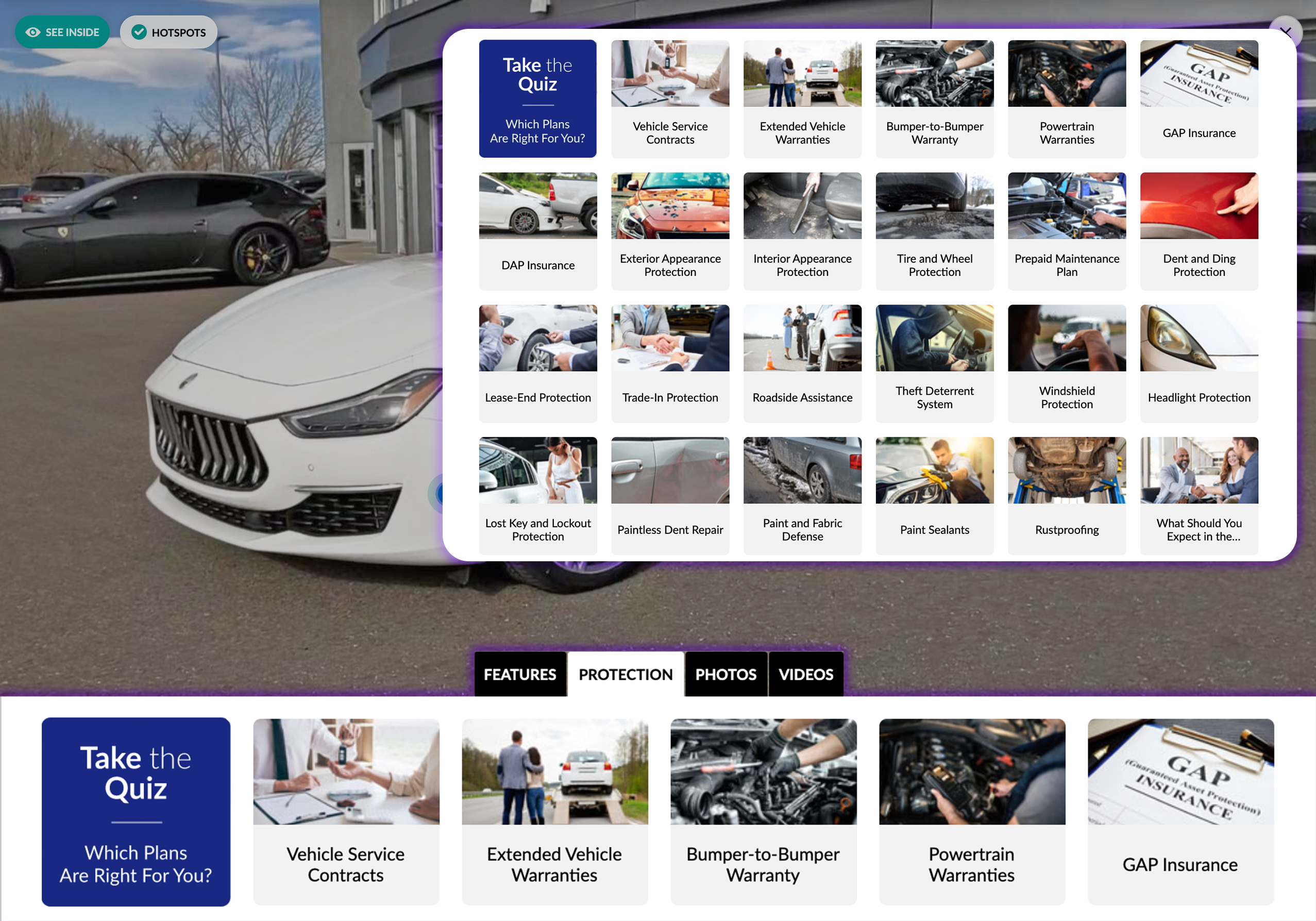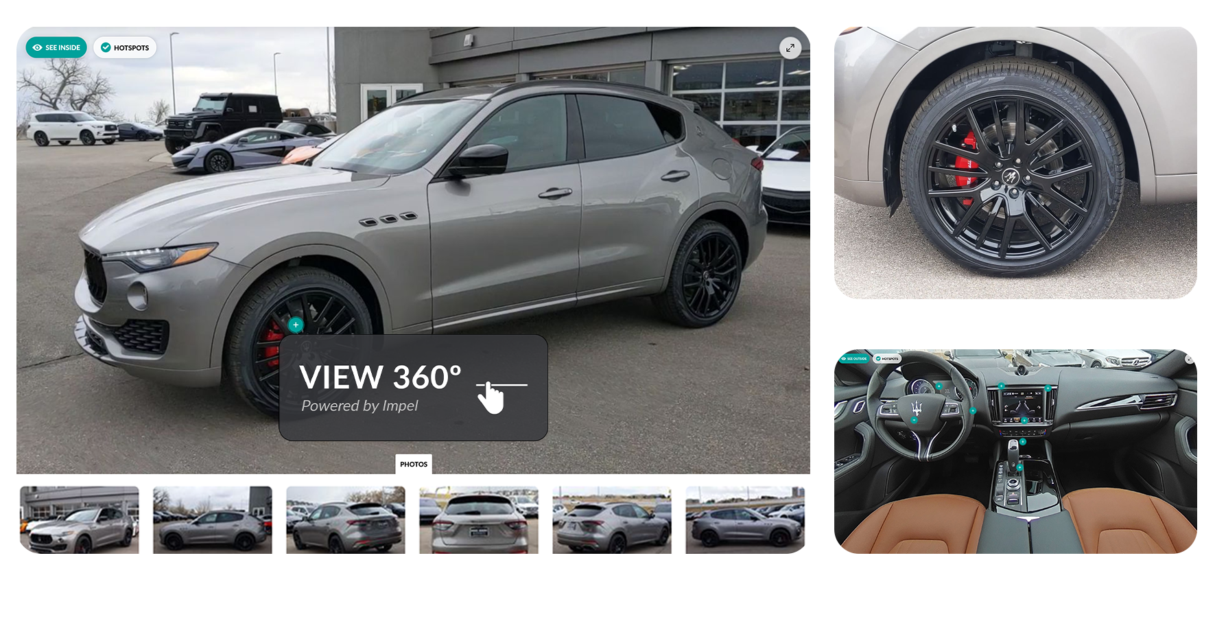 Help shoppers fall in love by enabling them to explore every aspect of a vehicle from any angle, anytime, anywhere. Put shoppers in complete control with interactive and immersive vehicle exploration. And with Impel’s Capture App, dealers can capture 360° exterior walkarounds, interior panoramic video, 64 still images and a narrated video tour (if activated) in five minutes. It’s the competitive advantage that thousands of dealers use to keep shoppers on their site longer.