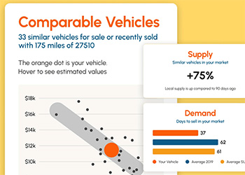 Configure the questions you ask shoppers and the deductions based upon their answers, ensuring the value you place on the vehicle matches your acquisition strategy. Letting motivated shoppers instantly receive a firm offer creates a higher quality lead, enabling your team to focus on shoppers who are ready to act. When the single-price offer is delivered we surround it with real-time market data and transparency in deductions allowing your team to discuss values based up.