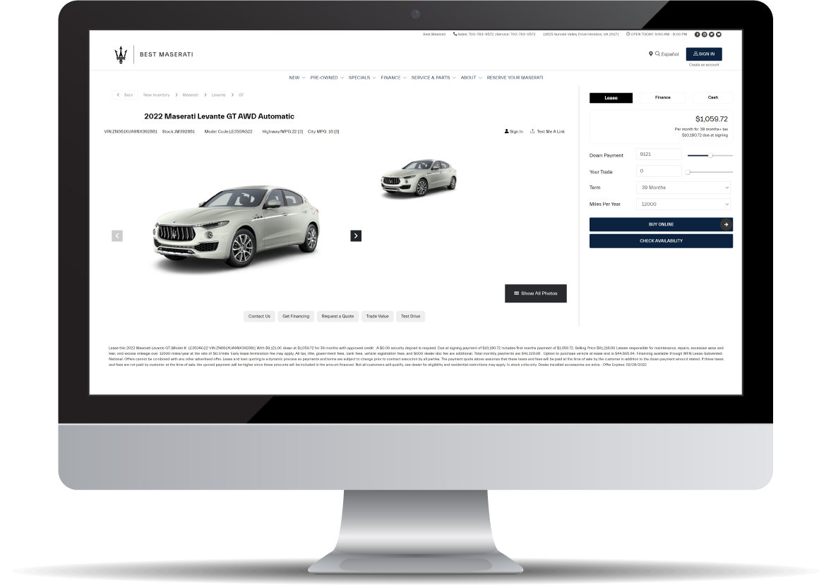 Rather than utilizing 3rd party plug-ins, our all-inclusive website platform seamlessly integrates all major applications, including: finance, trade value, service scheduling, digital retailing, video, text, SEO, ADA compliance, and creative. Everything your customers need to transact is natively built into your website, no plug-ins required, making it less expensive, lightning fast and easy to navigate.