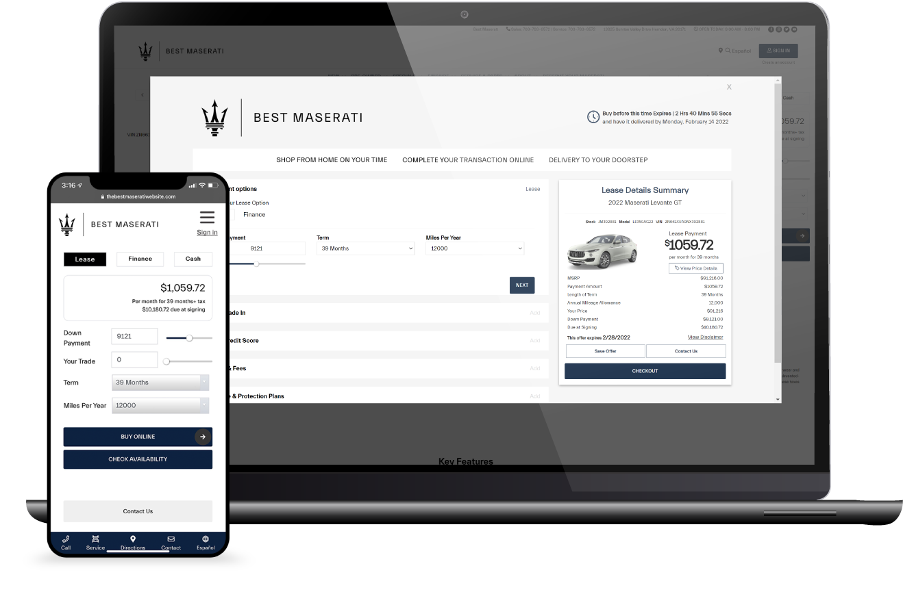 Apollo Sites was built for a frictionless, transactional customer experience. It includes a suite of transactional features, like online service scheduling with touchless pick-up and delivery, virtual test drives, and buy online applications, to provide an unparalleled customer experience. Everything consumers need to transact is right at their fingertips.